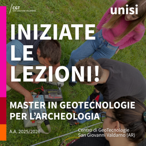 Ha preso avvio l’8 gennaio 2026 il Master di II livello in Geotecnologie per l’Archeologia (GTARC) dell’Università di Siena, organizzato dal Dipartimento di Scienze Storiche e dei Beni Culturali in collaborazione con il Centro di Geotecnologie (CGT) di San Giovanni Valdarno, sede delle attività didattiche. L’inizio delle lezioni segna l’apertura ufficiale di un nuovo anno accademico